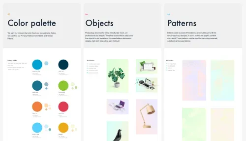 Our proposed color scheme included the use of gradients and pastel colors combined with a range of high contrast colors to create a fresh and modern look and feel. These colors were chosen to convey the company's focus on innovation and forward-thinking approach. The gradients and pastel colors were used to create a sense of movement and dynamism, while the high contrast colors were used to draw attention and emphasize key elements of the design.